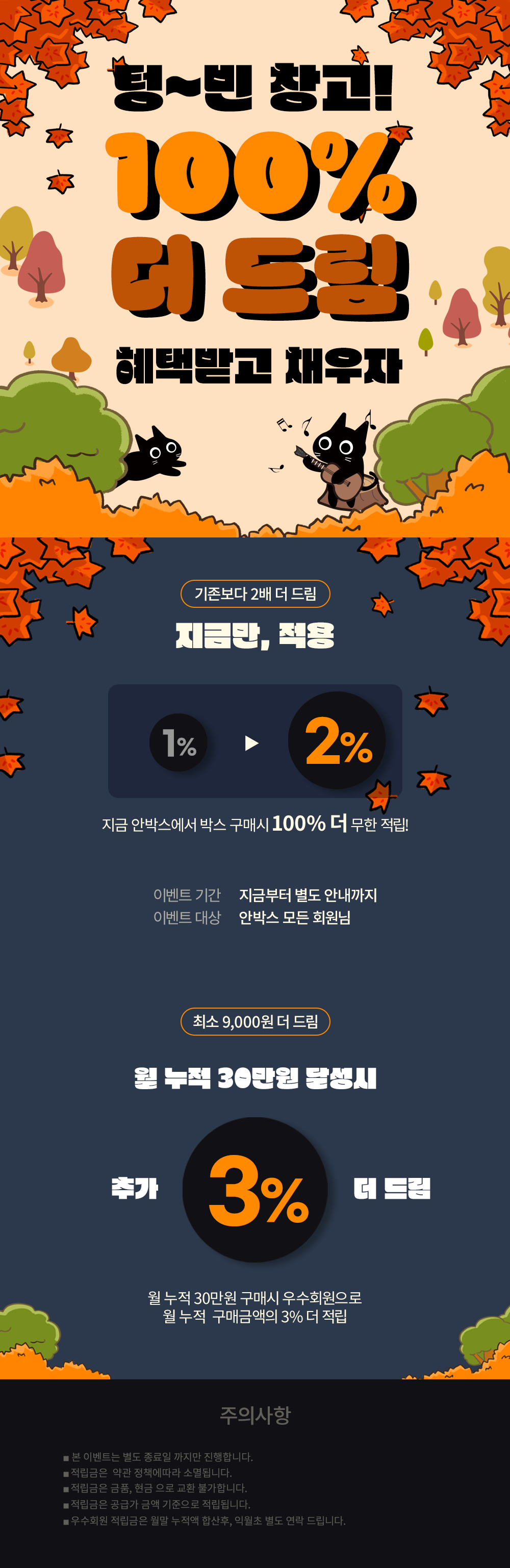 [이벤트/혜택] 텅 빈 창고 100%더 받고 채우자!