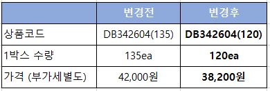 택배박스 DB342604(135)의 포장수량 및 판매가격이 변경되어 안내해드립니다.